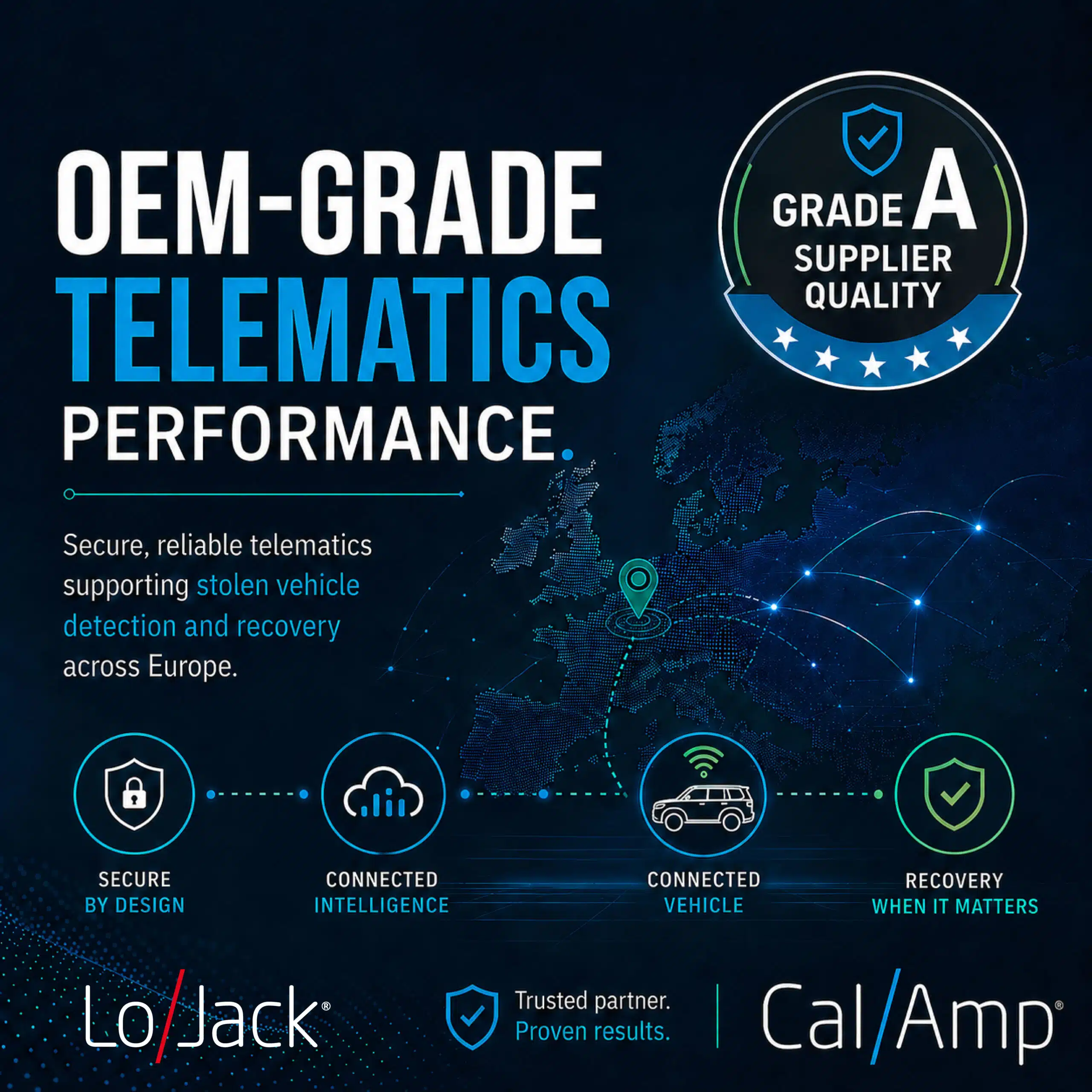 Como parte de su portafolio de soluciones de vehículos conectados, CalAmp integra diversas marcas especializadas como LoJack , enfocada en la recuperación de vehículos robados y la protección de activos.